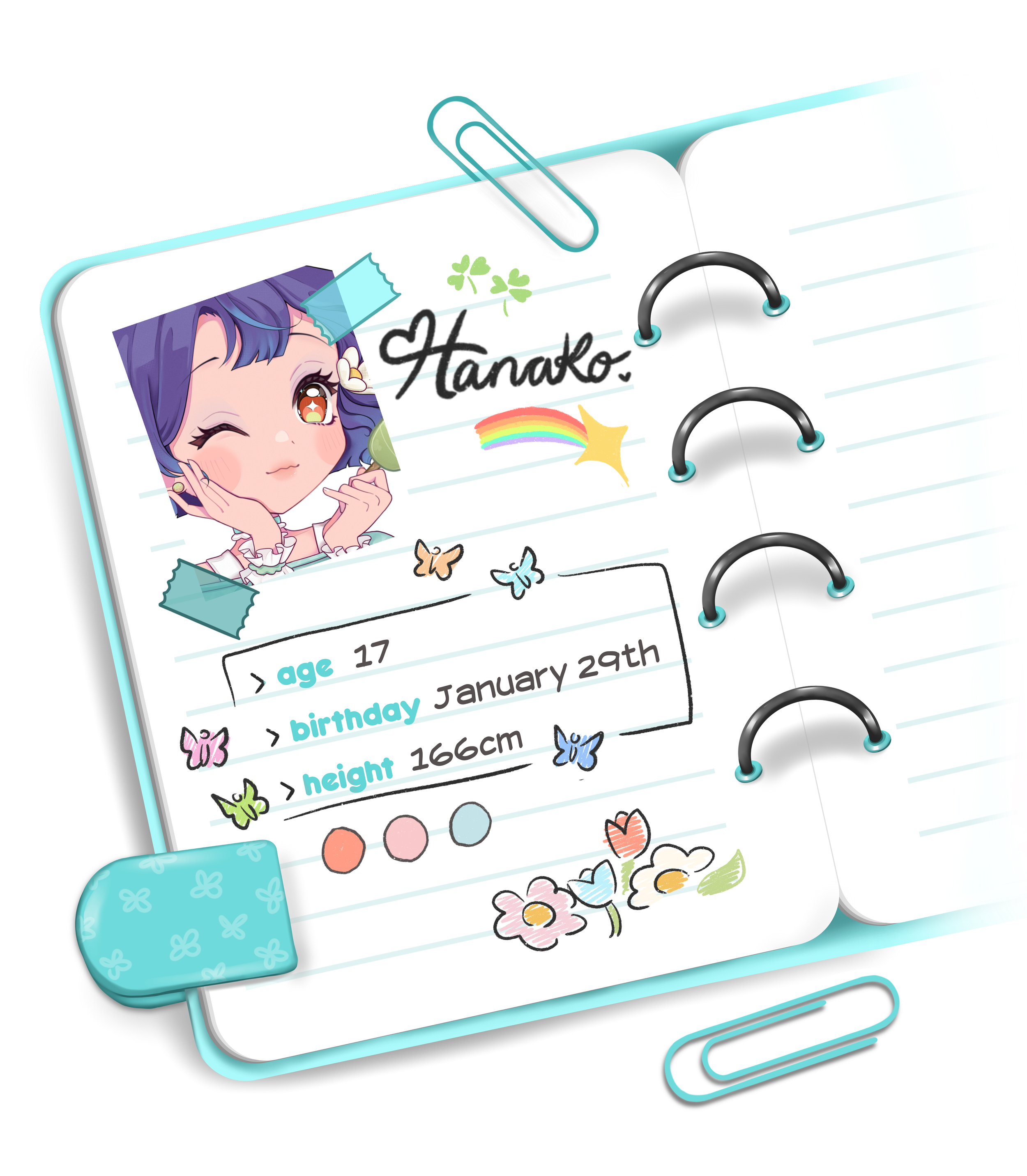 ♢ Her parents worked very hard day and night, so Hanako would only really see them at dinner time or before bed. When she was twelve, Hanako and her family moved to the city where she had to adjust to a whole new way of life. She and her sister started attending Riverstone Bridge Academy straight away and quickly became popular for their looks, personality and wealth, they had everything anyone could want.